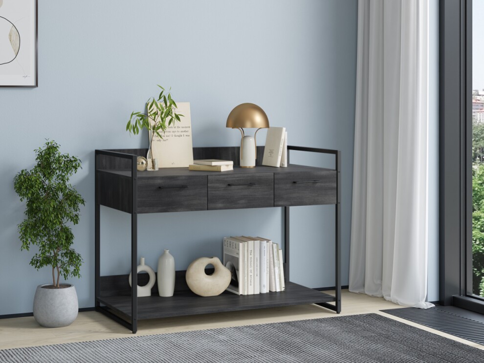 Консоль Урбан Лофт 02 черный северное дерево темное от российской фабрики-производителя изготавливается из стального профиля 20*20мм, окрашенного порошковой экологически чистой и безопасной краской и ЛДСП высокого качества, толщиной 16мм. Гарантированный срок службы всего мебельного ряда Урбан Лофт 12 месяцев. Выдвижные ящики - на направляющих.