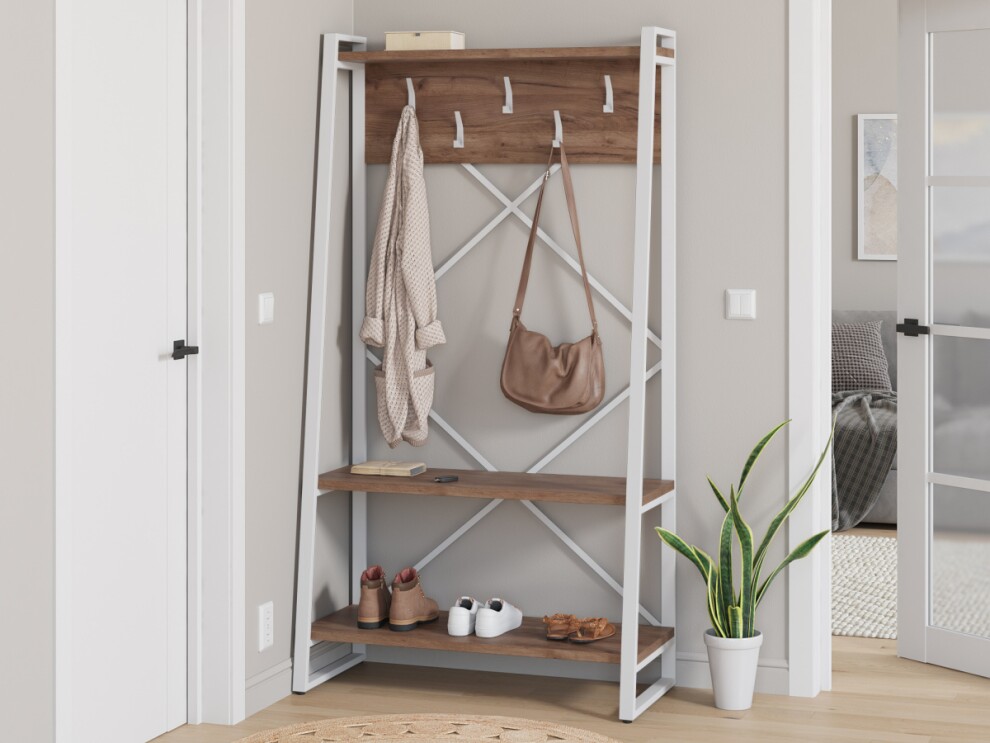 Прихожая Айсберг Лофт 100х187 белый дуб крафт табак — идеальное сочетание стиля и функциональности для вашего дома, выполнена в популярном стиле лофт, который сочетает в себе простоту и изящество современных форм. Здесь вы найдете достаточно места для хранения верхней одежды и обуви вашей семьи.