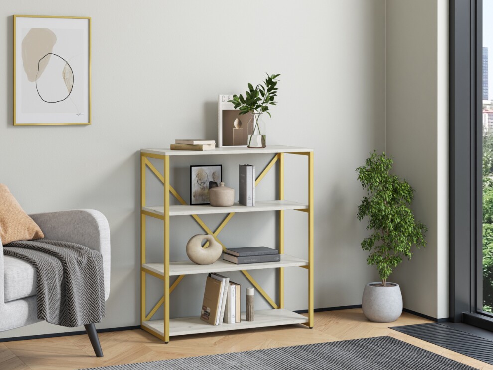 Стеллаж Айсберг Лофт Gold 80/4 золотой дуб крафт белый
