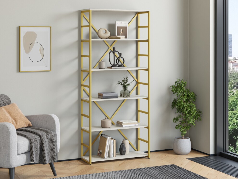 Стеллаж Айсберг Лофт Gold 80/6-2 золотой дуб крафт белый