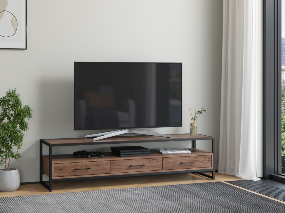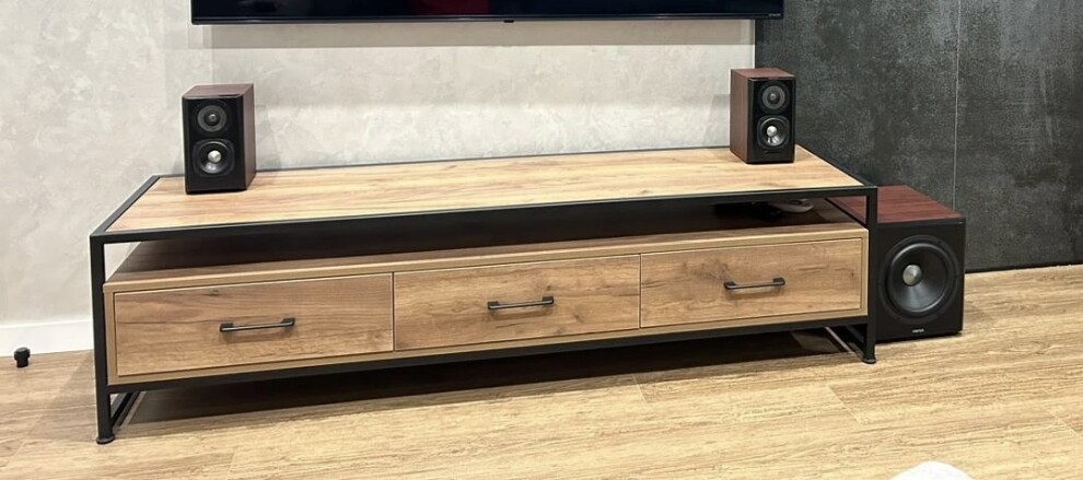 Тумба под ТВ Урбан Лофт 01 черный дуб крафт табак от российской фабрики-производителя изготавливается из стального профиля 20*20мм, окрашенного порошковой экологически чистой и безопасной краской и ЛДСП высокого качества, толщиной 16мм. Выдвижные ящики на роликовых направляющих. Ножки выполнены из высокопрочного пластика и регулируются по высоте.