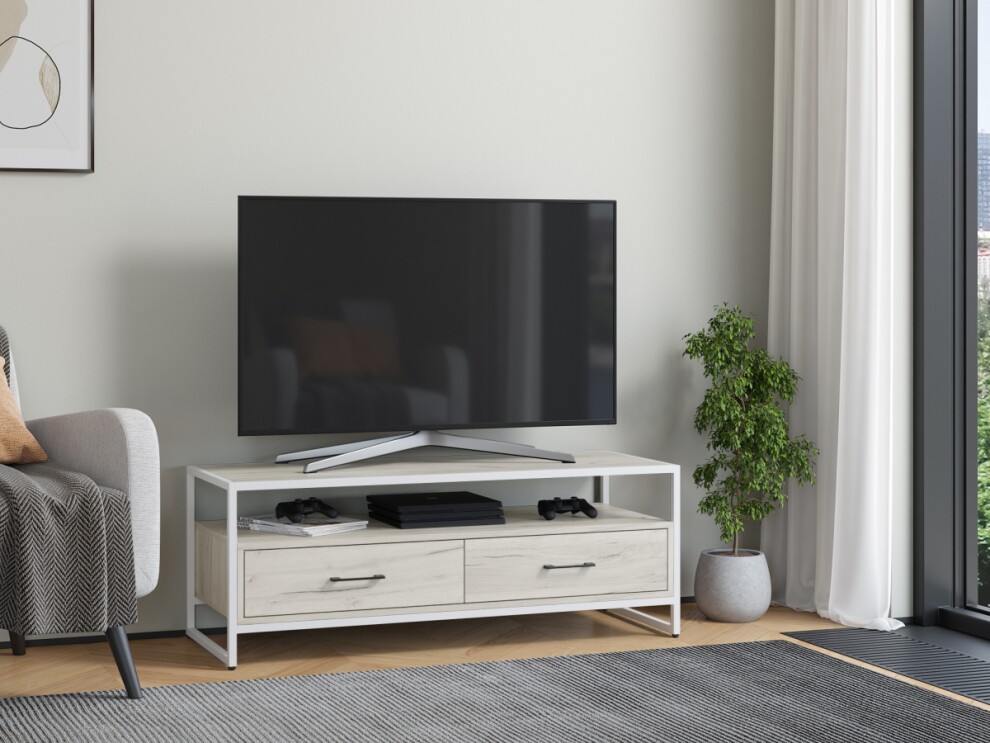 Тумба под ТВ Урбан Лофт 02 белый дуб крафт белый
